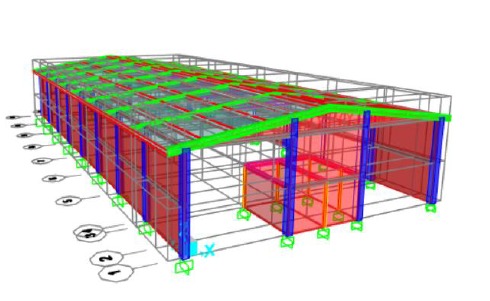 Descripción: Estructura de un solo nivel, para uso de bodega, estructurado a base de un sistema combinado de columnas de concreto reforzado y muros diafragma de mampostería confinada, con un sistema de cubierta ligera a dos aguas a base de perfiles rolados en frio. Diseñada en Abril de 2020.