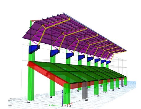 Proyecto: Cubierta de acceso Ubicación: Chiapa de corzo, Chiapas. Medidas: 18.50 m x 30.00 m Área de construcción: 471.65 m2 Altura máxima: 9.00 m Descripción: Estructura tipo bodega…